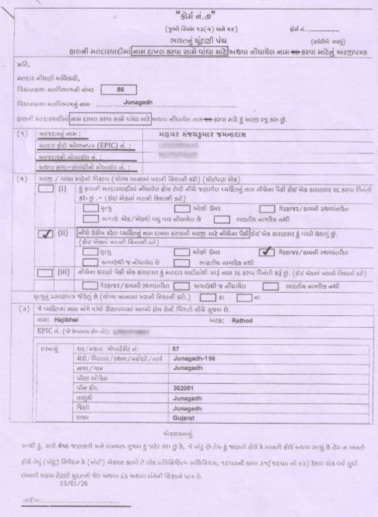 ભારત સરકાર દ્વારા પદ્મશ્રી થી સન્માનિત કરાયેલ હાજી કાસમ મીરનું ભાજપ કોર્પોરેટરે ફોર્મ નં. ૭ ભર્યું.