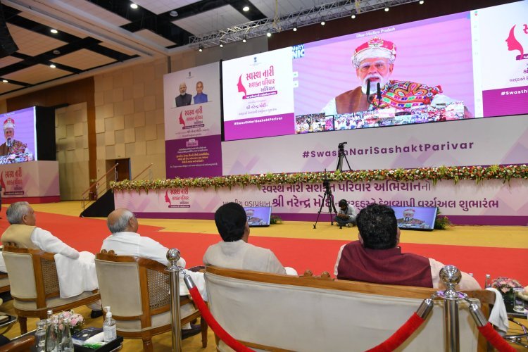 વડાપ્રધાન શ્રી નરેન્દ્રભાઇ મોદીએ આજે મધ્યપ્રદેશના ધાર ખાતેથી રાષ્ટ્રવ્યાપી અભિયાન “સ્વસ્થ નારી, સશક્ત પરિવાર”નો શુભારંભ કરાવ્યો હતો તેમજ દેશના નાગરિકોને પ્રેરક સંબોધન કર્યું હતું. આ કાર્યક્રમનું રાજ્યપાલ શ્રી આચાર્ય દેવવ્રતજી, મુખ્યમંત્રી શ્રી ભૂપેન્દ્ર પટેલ તેમજ આરોગ્ય મંત્રી શ્રી ઋષિકેશ પટેલે મહાત્મા મંદિર-ગાંધીનગર ખાતેથી વર્ચ્યુઅલ પ્રસારણ નિહાળ્યું હતું.