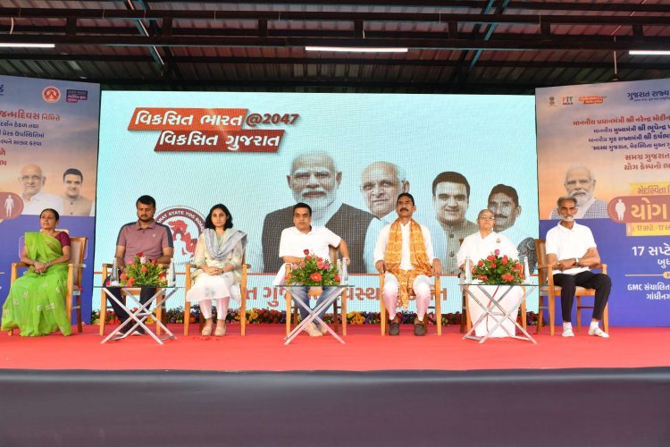 મુખ્યમંત્રી શ્રી ભૂપેન્દ્ર પટેલના માર્ગદર્શનમાં "સ્વસ્થ ગુજરાત, મેદસ્વિતા મુક્ત ગુજરાત"ના સંકલ્પને સાકાર કરવા અને વડાપ્રધાન શ્રી નરેન્દ્રભાઈ મોદીના ૭૫માં જન્મ દિવસ નિમિત્તે રાજ્યભરમાં વિવિધ ૭૫ સ્થળોએ મેદસ્વિતા નિવારણ ‘યોગ કેમ્પ’નો આજે ગાંધીનગર ખાતેથી ગૃહ રાજ્ય મંત્રી હર્ષ સંઘવીએ ભવ્ય શુભારંભ કરાવ્યો હતો.